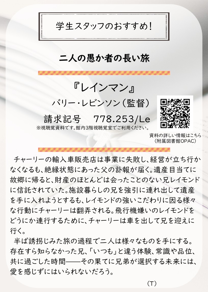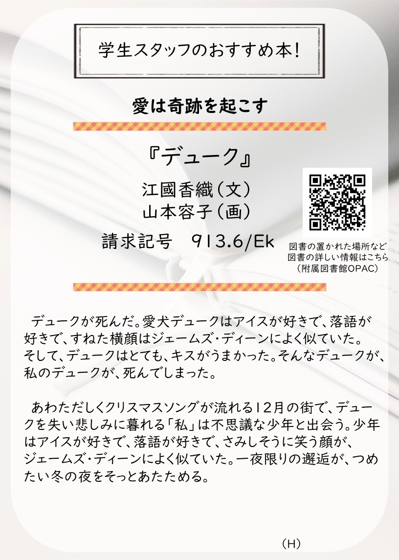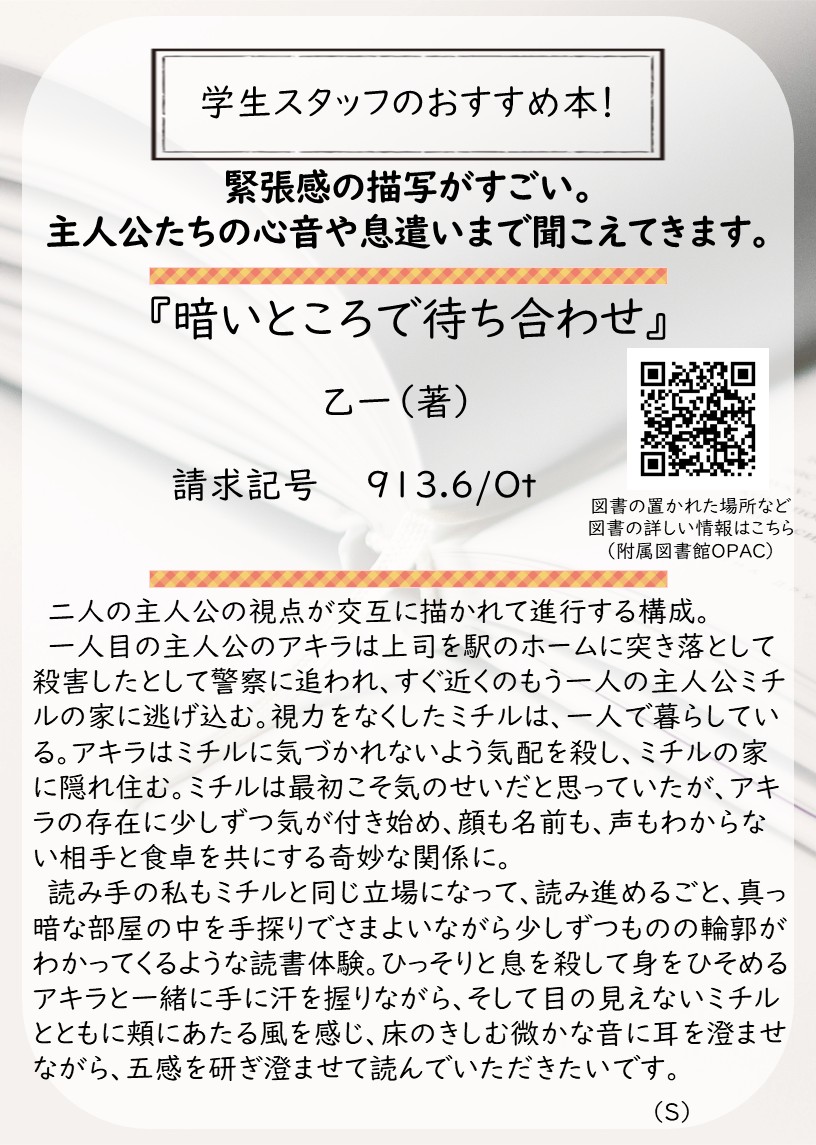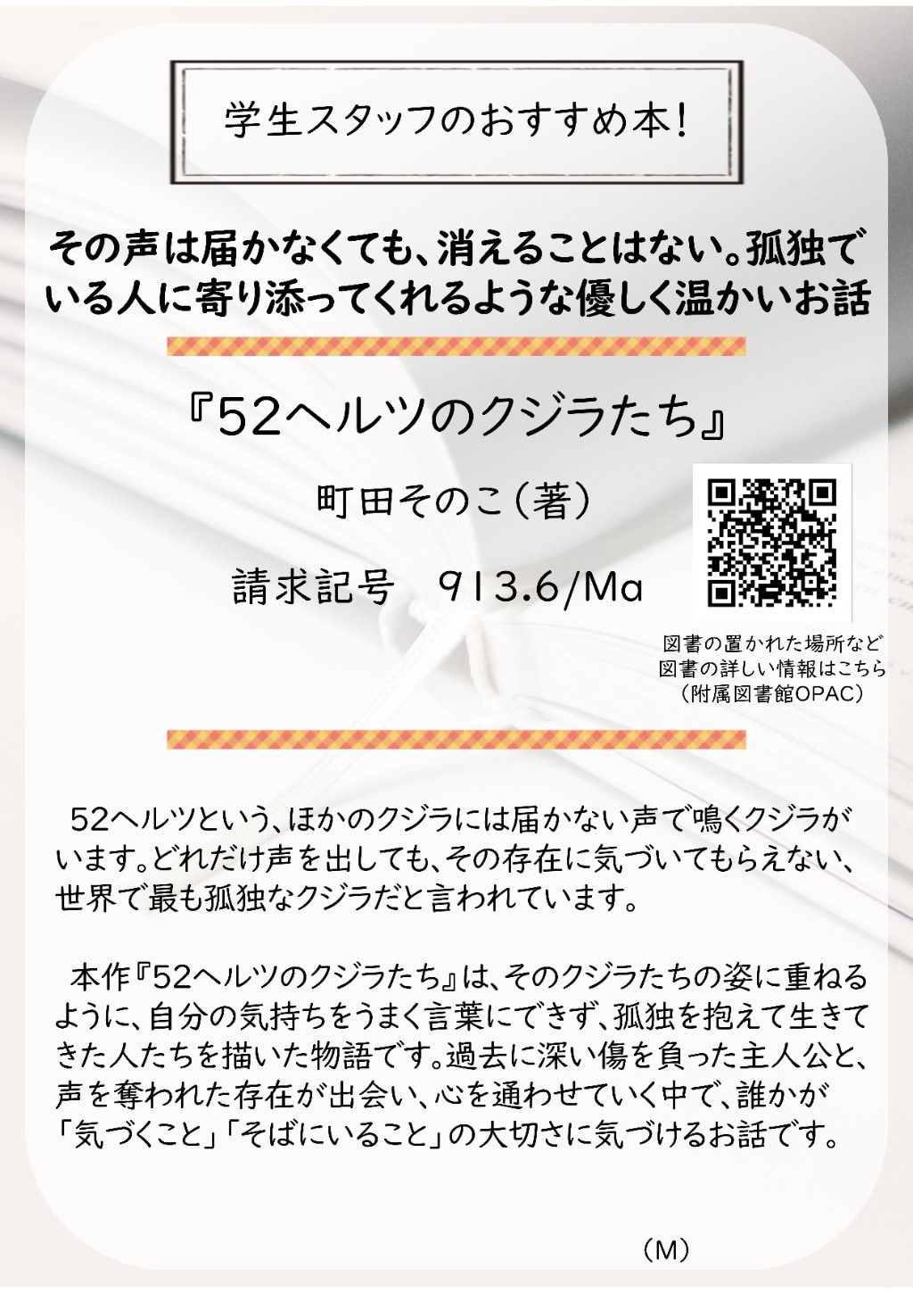 札幌館では、学生スタッフが「皆さんに読んでほしい!」と思う、札幌館のおすすめ本を紹介する企画を実施中です。
