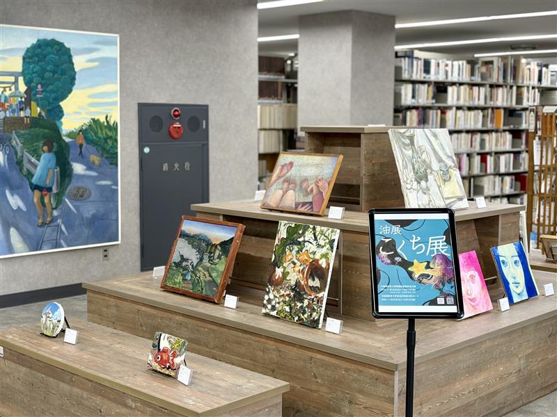 図書館内ピラミッドとピクチャーレールにて、「油展こくち展」を開催中です。