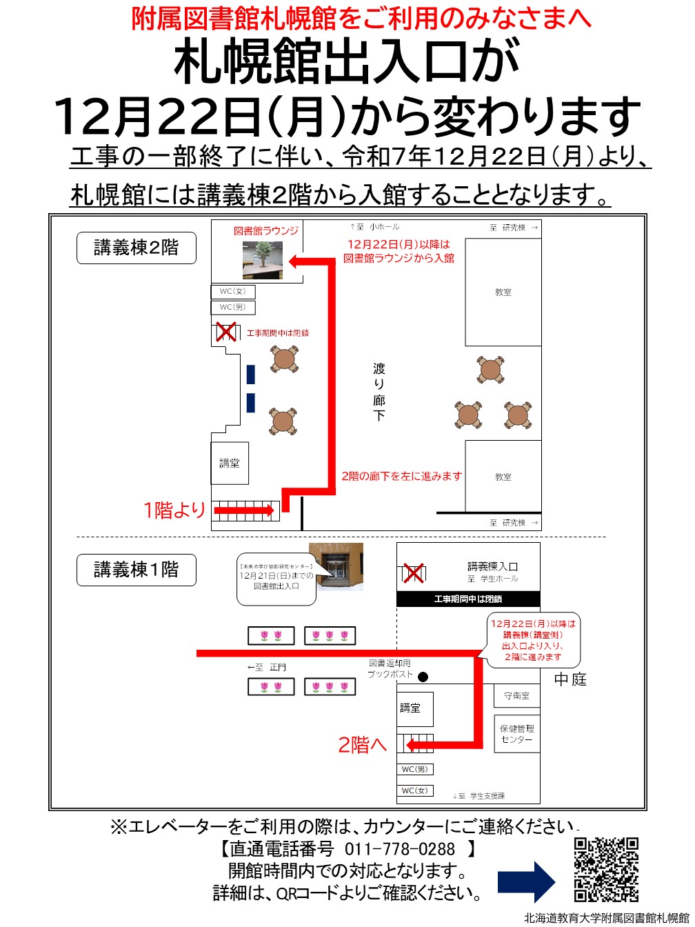 [札幌] 札幌館出入口の変更について(令和7年12月22日(月)~)